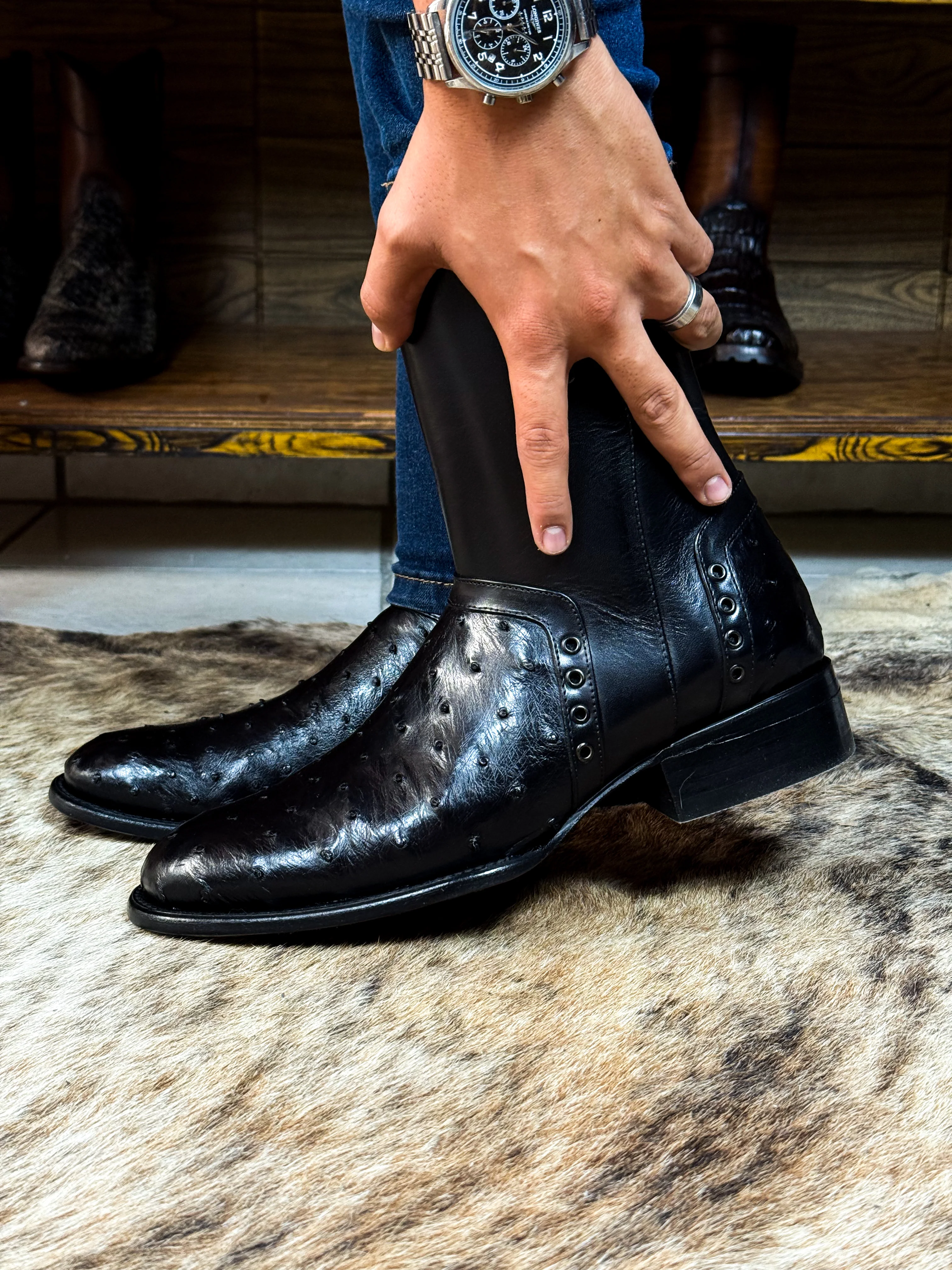 SEBASTIAN BLACK AVESTRUZ BOOTS OVAL